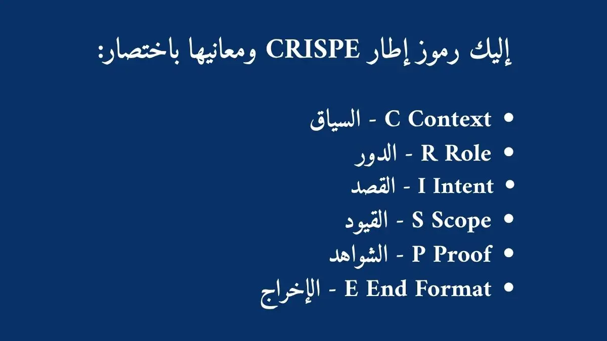 إليك رموز إطار CRISPE ومعانيها باختصار: